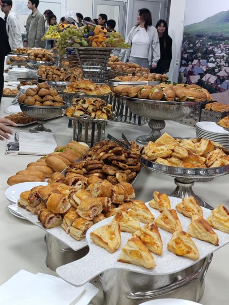 À la fin de cette parenthèse culturelle, encadrée par une présentatrice arménienne, le public a été invité à prendre part au buffet installé dans le hall de la maison de la culture. Les tables, pourvues de mets variés (feuilletés, légumes, viandes et gâteaux), étaient nombreuses. Certains stands proposaient, en plus de leurs spécialités, des produits d'autres pays proches, comme des dolmas syriens.
