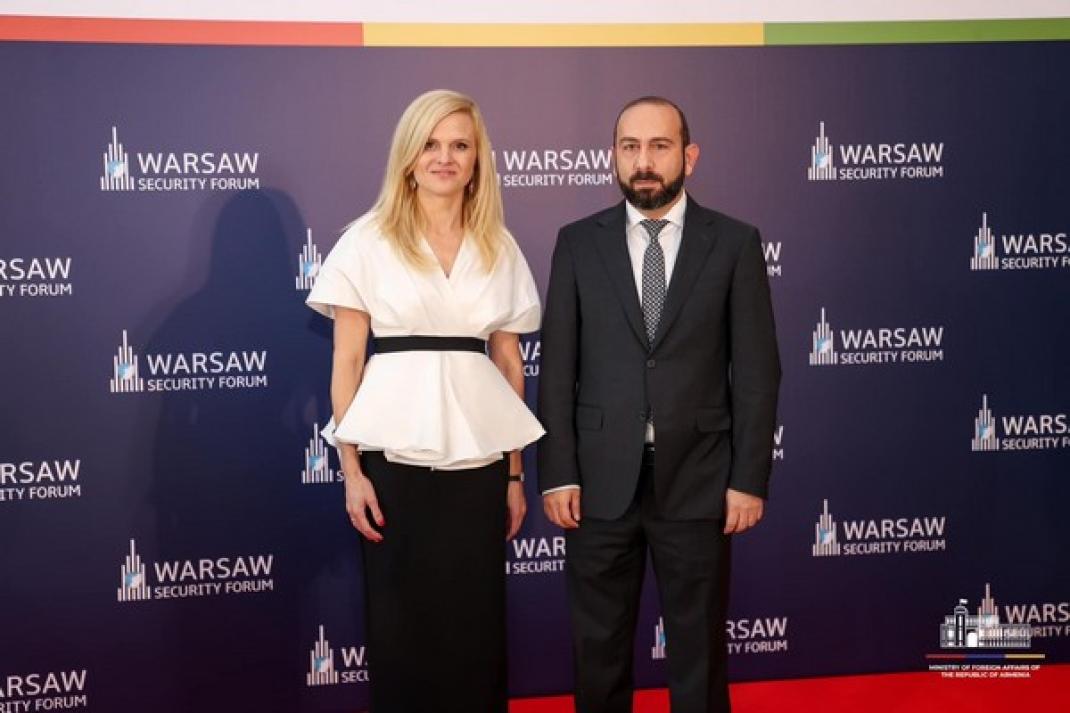 M. Ararat Mirzoyan, ministre arménien des Affaires étrangères, a rencontré Mme Radmila Szekerinska, secrétaire générale déléguée de l'OTAN dans le cadre du Forum de Varsovie sur la sécurité.