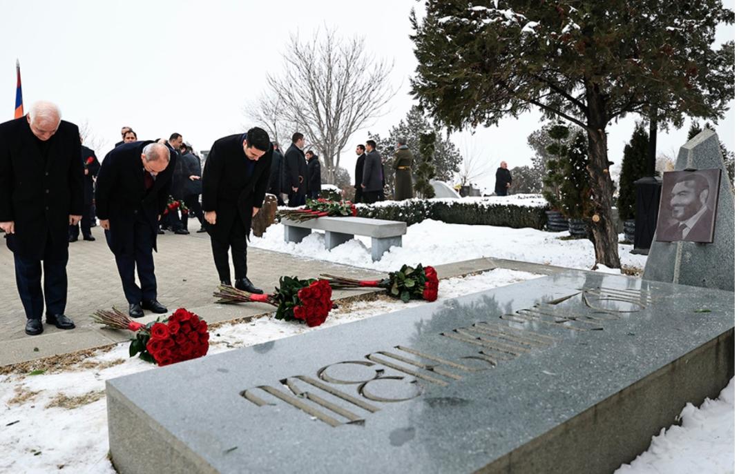 Selon le service de presse du gouvernement, Pashinyan a déposé des fleurs sur les tombes de Vazgen Sargsyan et du général Andranik Ozanian, ainsi qu'une couronne au mémorial dédié à la mémoire des combattants tombés pour la liberté.