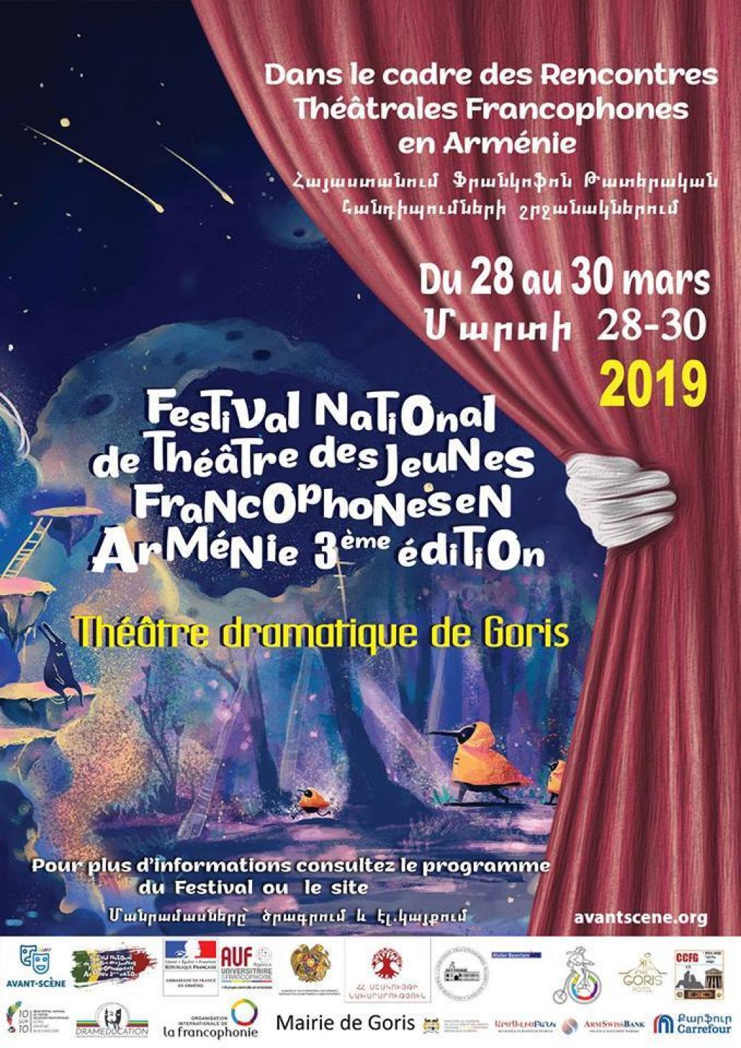 Organisée dans le cadre des Rencontres théâtrales francophones par l’association « Avant-scène », en lien avec le « Festival 10 sur 10 », elle rassemblera plus de 80 jeunes et proposera des rencontres avec des auteurs francophones, des ateliers et des représentations théâtrales. Cette grande fête théâtrale est soutenue par l’Ambassade de France en Arménie, le Ministère de la culture de la République d’Arménie, la Mairie de Goris, l’Agence universitaire de la Francophonie et l’Organisation internationale de la Francophonie.