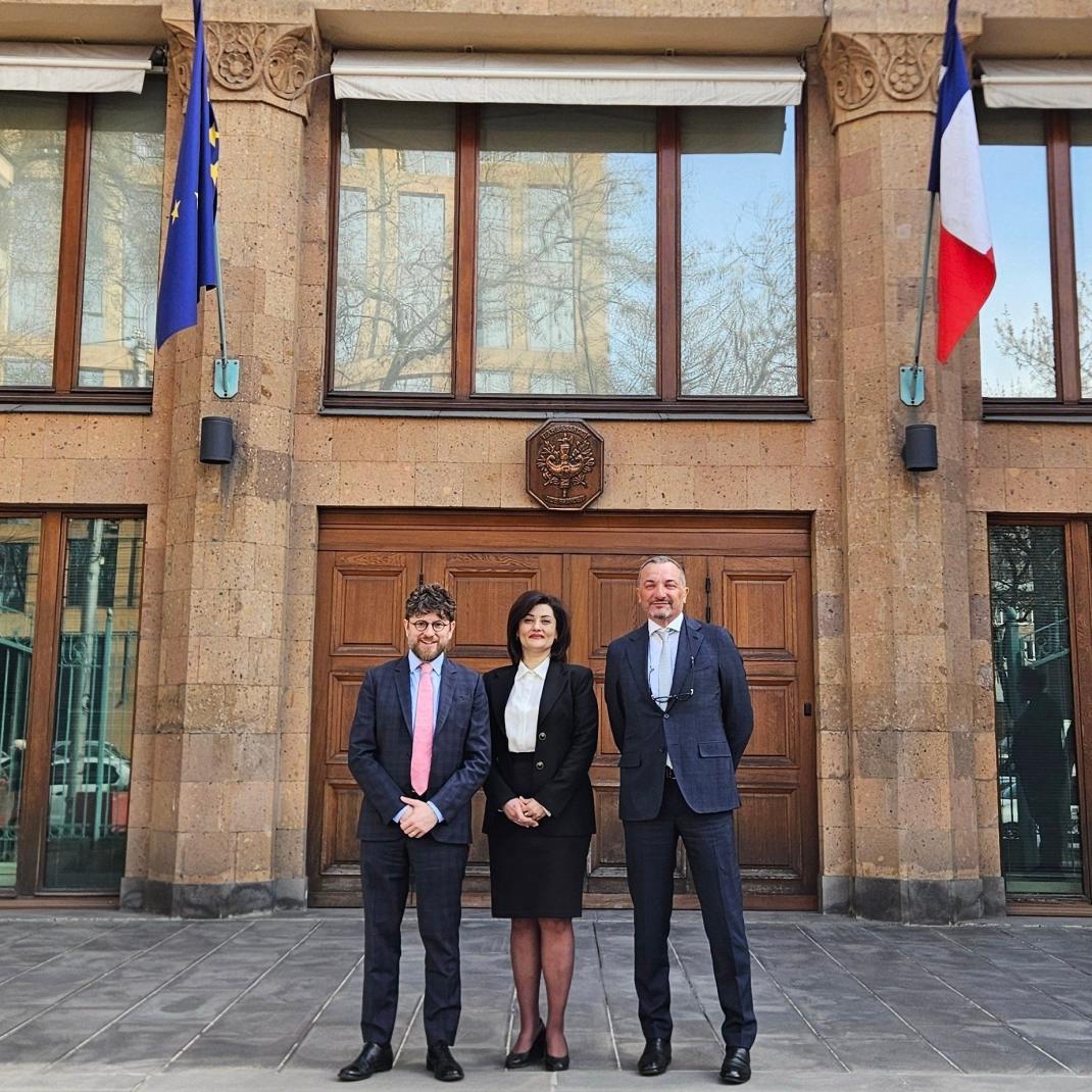 Une rencontre entre Olivier Decottignies, ambassadeur extraordinaire et plénipotentiaire de France en Arménie, Philippe Guitard, vice-président de la société Veolia, et Marianna Shahinyan, directrice de Veolia Armenia, a eu lieu à Erevan.